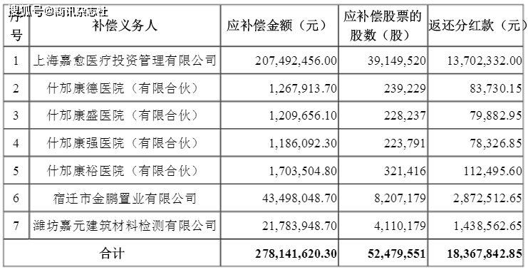 除此之外,当初三家医疗机构的7位原股东合计需补偿常宝股份2.78亿元,应补偿股票的股数为0.52亿股,返还分红款0.18亿元。