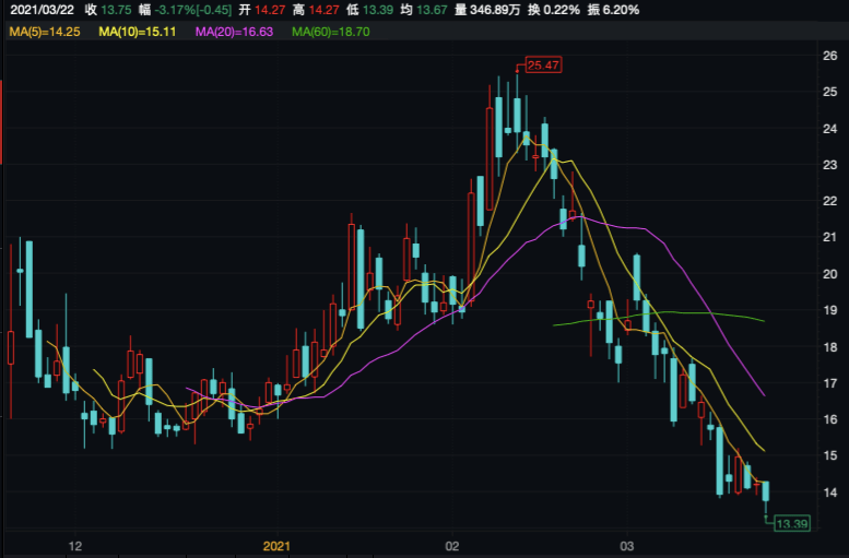 不过此后,该股走势有所回落。截至2021年3月22日美股收盘,逸仙电商报收于13.75美元/股,已较高点缩水46%。