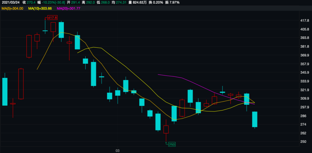 不过,近日科技股出现大幅波动,快手也随之明显回调。截至2021年3月23日收盘,快手报收于301.2港元/股,与前期高点相比,股价已跌去28%,但与发行价相比,该股仍有较大涨幅。