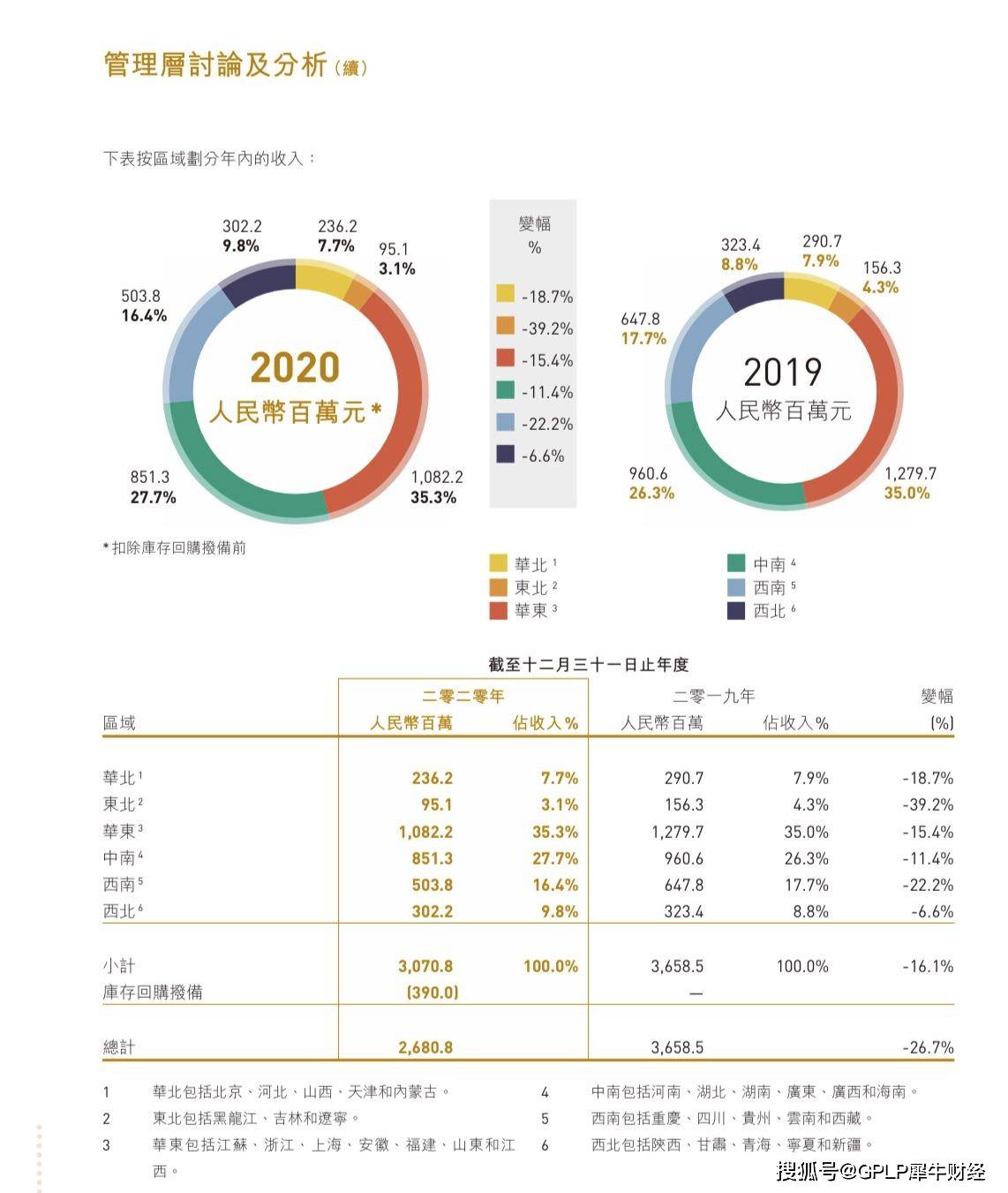 除此之外,中国利郎在各地区的销售逐年下跌,其中西北地区的销售下跌幅度最小,销售同比下降6.6%,东北地区销售下跌幅度最大,同比下跌39.2%。
