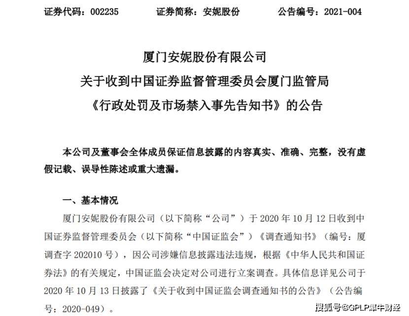 3月15日,安妮股份(002235.SZ)发布公告称,被中国证监会厦门监管局给予警告,并罚款30万元,因涉嫌信披违规。