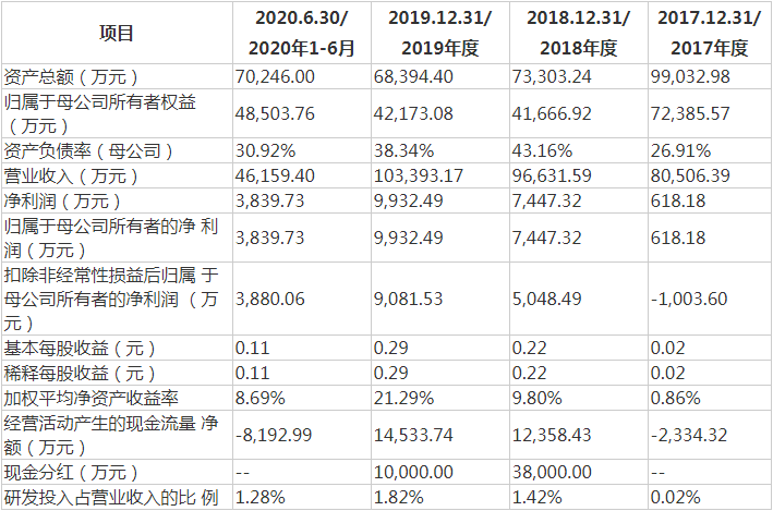 据招股书披露,2017-2020年上半年,华融化学的营业收入分别为8.05亿元、9.66亿元、10.34亿元和4.62亿元;同期分别实现归母净利润618.18万元、7447.32万元、9932.49万元和3839.73万元。