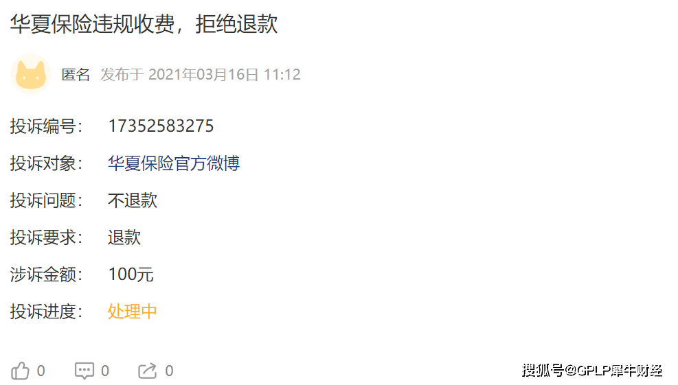 2021年3月16日,GPLP犀牛财经在黑猫投诉平台发现,华夏保险因违规收费、拒绝退款被消费者投诉,且截至2021年3月23日,华夏保险一共遭到59次消费者投诉。