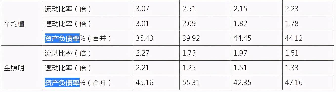 现金流的流出无疑是增加了金照明的资金风险。2017-2020年上半年,金照明的资产负债率(合并)分别为47.16%、42.35%、55.31%和45.16%,而同行业可比上市公司的资产负债率均值分别为44.12%、44.45%、39.92%和35.43%,金照明的资产负债率远高于同行。
