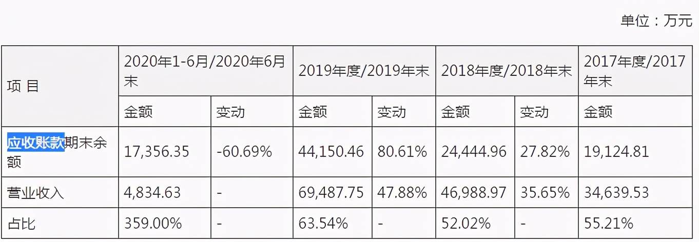 此外,由于建筑行业特点,金照明的应收账款也处在较高水平。2017-2020年上半年,公司应收账款期末余额分别为1.91亿元、2.44亿元、4.42亿元和1.74亿元,占同期营业收入的比例分别为55.21%、52.02%、63.54%和359.00%,2020年上半年的应收账款竟是当期营业收入的3倍之多。