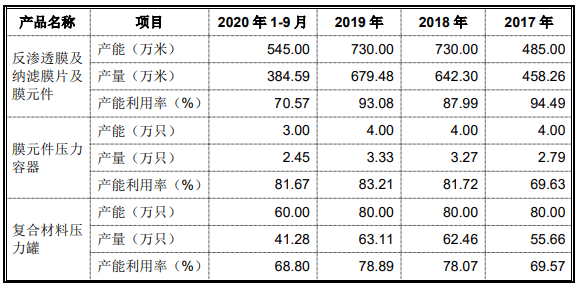 但报告期内,唯赛勃各产品产能均未饱和。2017年至2019年及2020年1-9月,唯赛勃复合材料压力罐的产能利用率分别为69.57%、78.07%、78.89%、68.80%;膜元件压力容器产能利用率分别为69.63%、81.72%、83.21%、81.67%;反渗透膜及纳滤膜片及膜元件产能利用率分别为94.49%、87.99%、93.08%、70.57%。