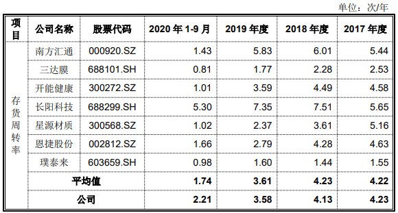 招股书称,2017年度,南方汇通应收账款周转率较其后年度异常偏高,剔除其2017年度异常值后,2017年度平均值为3.30;公司应收账款周转率水平整体与同行业可比公司接近,差异主要系公司与同行业可比公司在产品结构、客户分布、销售结算体系等方面存在差异所致。