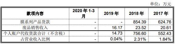 2017年至2018年期间,上述客户向公司采购金额分别为624.76万元和854.39万元,款项直接支付给实际控制人谢建新控制的个人账户。2017年至2019年期间,公司存在少量废品销售,款项以现金形式收取,定期存入由实际控制人谢建新控制的个人账户,以支付公司日常经营费用。