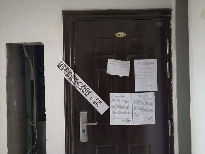 2021年3月初,界面新闻记者探访云润天阳小区,数十栋黄色建筑错落有致,从外观上看不出任何“烂尾”迹象。但进入小区的大门并无门禁,每栋楼层也可以自由进出,一些房门上贴着法院封条,走廊顶上裸露着管线。售楼部已经人去楼空,紧闭玻璃门上贴着两份贵山天阳公司落款的“告知书”,载明“云润天阳系未完工工程,未经过国家法定竣工验收”。
