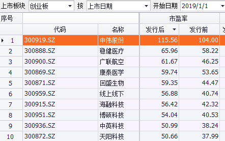 而截至2021年3月23日,东方财富显示, 2019年起创业板新上市公司共有186家,但发行市盈率超过73.65倍的仅有中伟股份一家,概率仅为0.54%。而创业板注册制下的新上市公司共有90家,其平均发行市盈率为33.64倍,中位数为30.67倍。