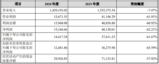 仅看上述数据,可能不会发觉益客食品的业绩变脸。 但事实上,益客食品经审阅的2020年财报显示,公司2020年营业收入为143.92亿元,同比下降7.47%;归母净利润为1.44亿元,同比下降61.67%。而且益客食品的业绩下降,并不是非经常性损益导致,其2020年扣非后归母净利润下滑幅度更大,同比下滑65.59%。