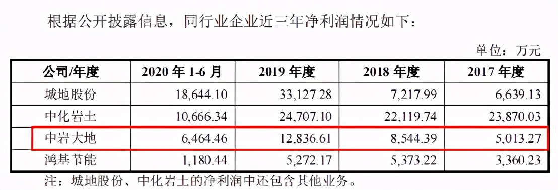 同时,鸿基节能招股书显示,2017年至2019年,中岩大地的净利润分别为5013.27万元、8544.39万元、12836.61万元。但据中岩大地招股书显示,其各期净利润分别为5241.47万元、9188.05万元、12836.61万元,2017年、2018年明显优于鸿基节能披露的经营情况。