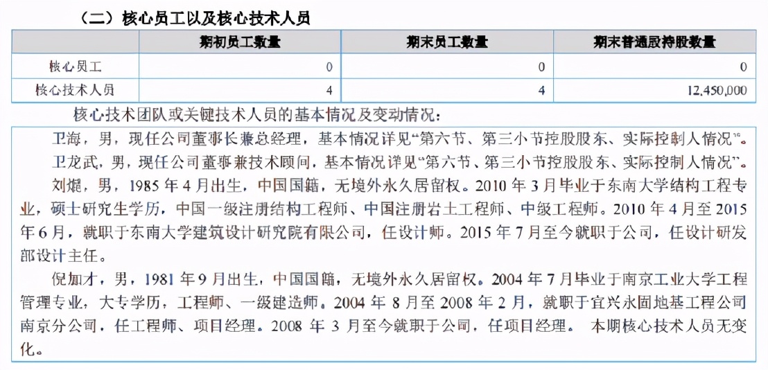 另外,上述核心技术人员中,卫龙武、卫海系父子关系,是鸿基节能的实际控制人。据鸿基节能新三板公开转让说明书披露,卫龙武于1975年9月至1991年8月在东南大学任教,历任土木系结构教研室副主任、结构研究所副所长。招股书称,卫龙武在1991年8月调离东南大学,离开后未在土木工程学院从事过实质性工作,土木工程学院未交付卫龙武任何科研任务和科研经费,卫龙武亦未利用土木工程学院相关物质条件进行过任何研究工作。