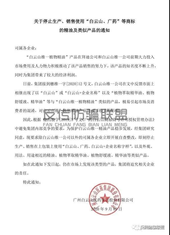 前不久,广州白云山制药股份有限公司更是一纸《通知》力挺白云山维一植物精油。那么,作为一家老字号药企,广州白云山制药股份有限公司为何松懈监管?还大力支持其发展,忽略产品下沉市场乱象,寓意何为?