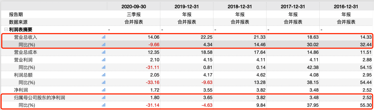 Wind数据显示,2016年-2020年前三季度好莱客分别实现营收14.33亿元、18.63亿元、21.33亿元、22.25亿元和14.06亿元,同比增长率分别为32.44%、30.02%、14.46%、4.34%和-9.66%;同期归母净利润分别为2.52亿元、3.48亿元、3.82亿元、3.65亿元和1.80亿元,同比增长率分别为55.30%、37.95%、9.84%、-4.63%和-31.14%。
