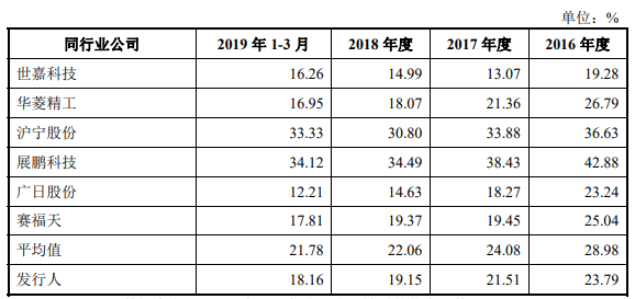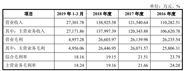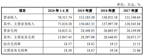 2016年至2020年1-6月,同力日升主营业务毛利率分别为24.20%、21.66%、19.16%、18.87%、18.39%。公司主营业务毛利率逐年下滑,连降3年半。