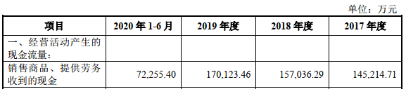 2016年至2020年1-6月,同力日升销售商品、提供劳务收到的现金分别为13.44亿元、14.52亿元、15.70亿元、17.01亿元、7.23亿元。