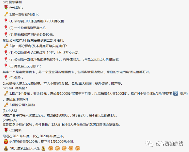 推广者奖金:1.推广1个股东,奖金85元,原始股1000股(仅限于本月底,以后每推4人奖1000股)。推广N个奖金:85xN元(提现零 费用)。原始股:1000xN2.
