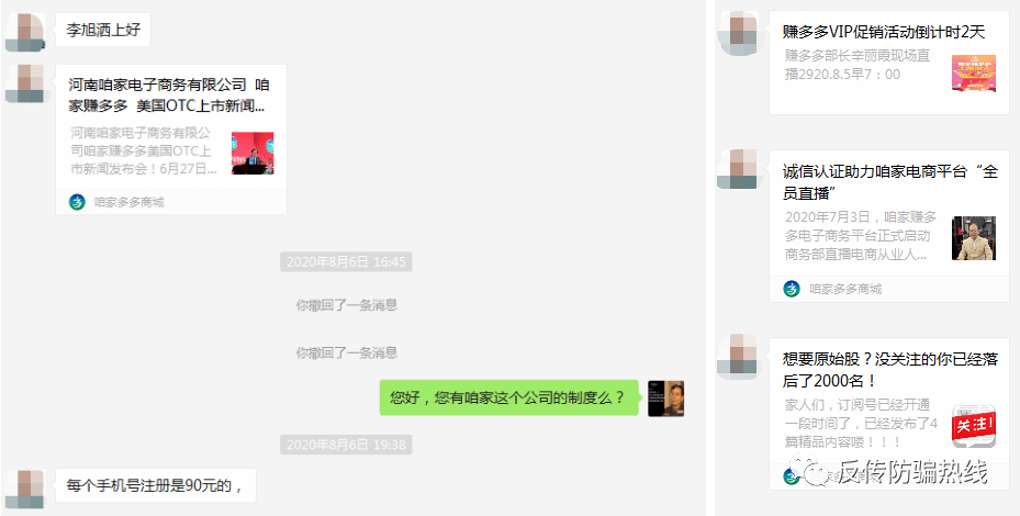 李旭反传销团队也曾接到多起关于咱家赚多多是否涉嫌传销的咨询及投诉。