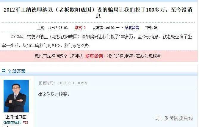 2017年,历经牢狱之灾的欧阳成国重获自由,而这一年也是河南咱家企业集团成立之年。现在在网上,我们还可以看到当年“纳豆”骗局留下的阴影,那是众多老百姓的血汗钱呀。