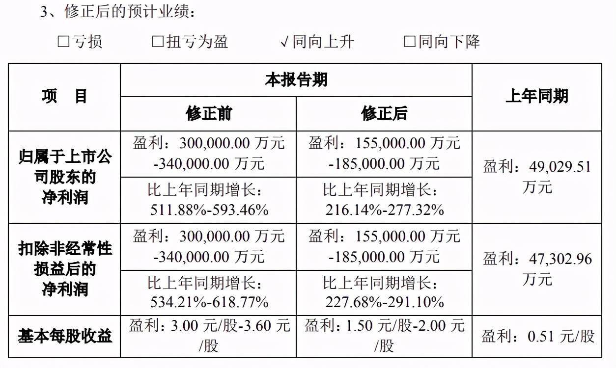 3月25日晚间,蓝帆医疗披露了业绩预告修正公告,此前预计净利润盈利30亿元至34亿元,修正后预计盈利15.5亿元至18.5亿元。