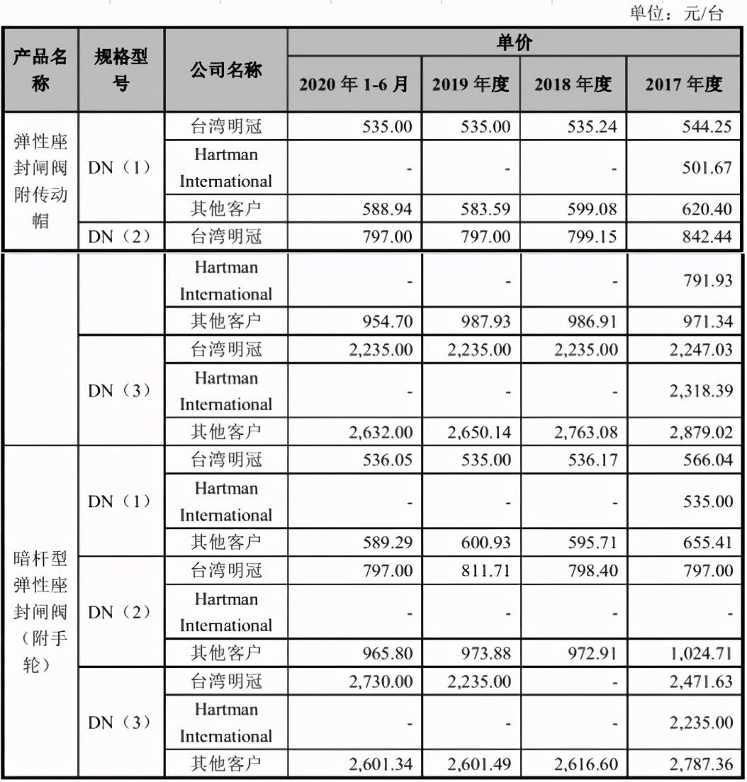 但《商务财经》发现,冠龙股份销售给台湾明冠及其关联方Hartman International的销售单价绝大部分要低于其他客户。