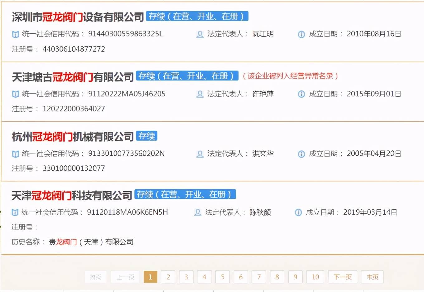 除此之外,商号中存在“冠龙阀门”的公司仍有很多。
