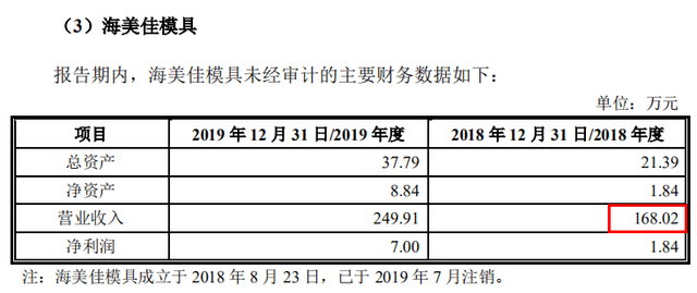 值得注意的是,2019年7月,海美佳模具办理注销登记手续,距离其成立还不到一年。