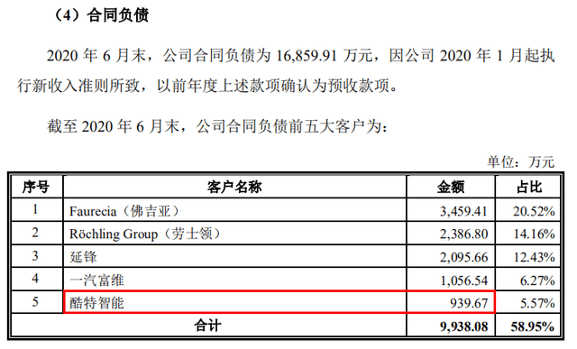 无独有偶,青岛酷特智能股份有限公司(证券代码:酷特智能,证券简称:300840.SZ)亦是海泰科的客户,截至2020年6月末,海泰科对酷特智能的合同负债金额为939.67万元,即为公司对酷特智能的预收款项。