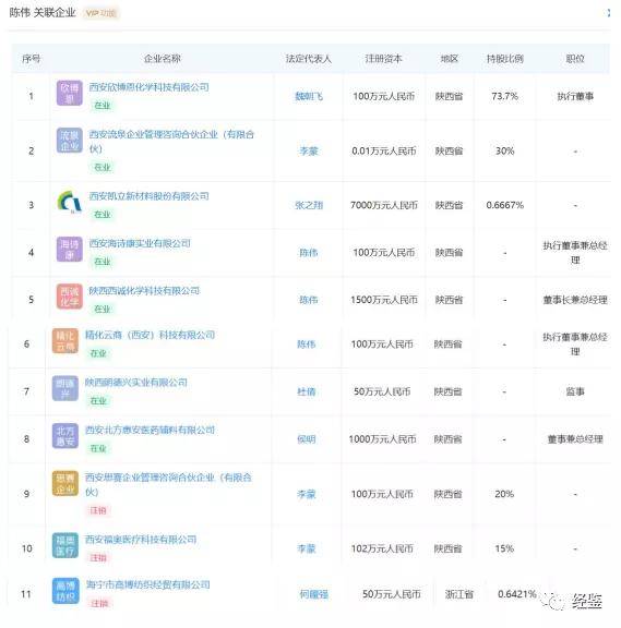 同时,陈伟担任多家公司法人和投资者角色,其中较多公司业务与西安凯立主营业务具有高度关联性。