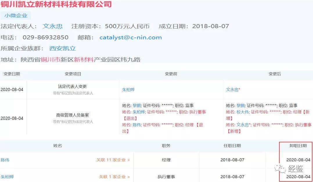 另据招股说明书披露,陈伟是西安凯立股东之一。工商资料显示,陈伟曾担任发行人子公司铜川凯立新材料经理职务,2020年8月4日卸职。
