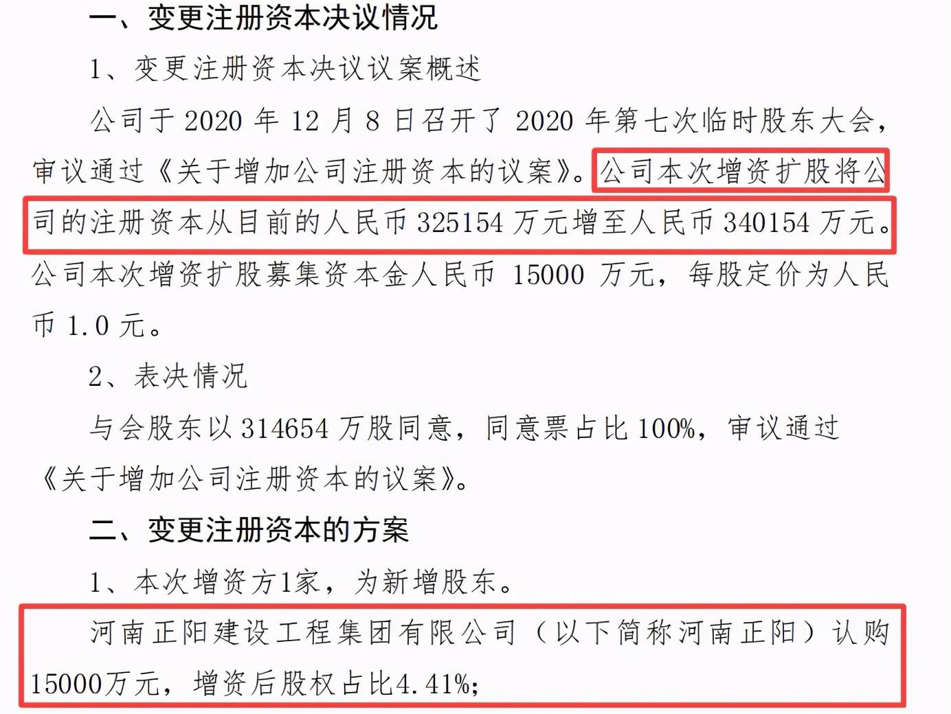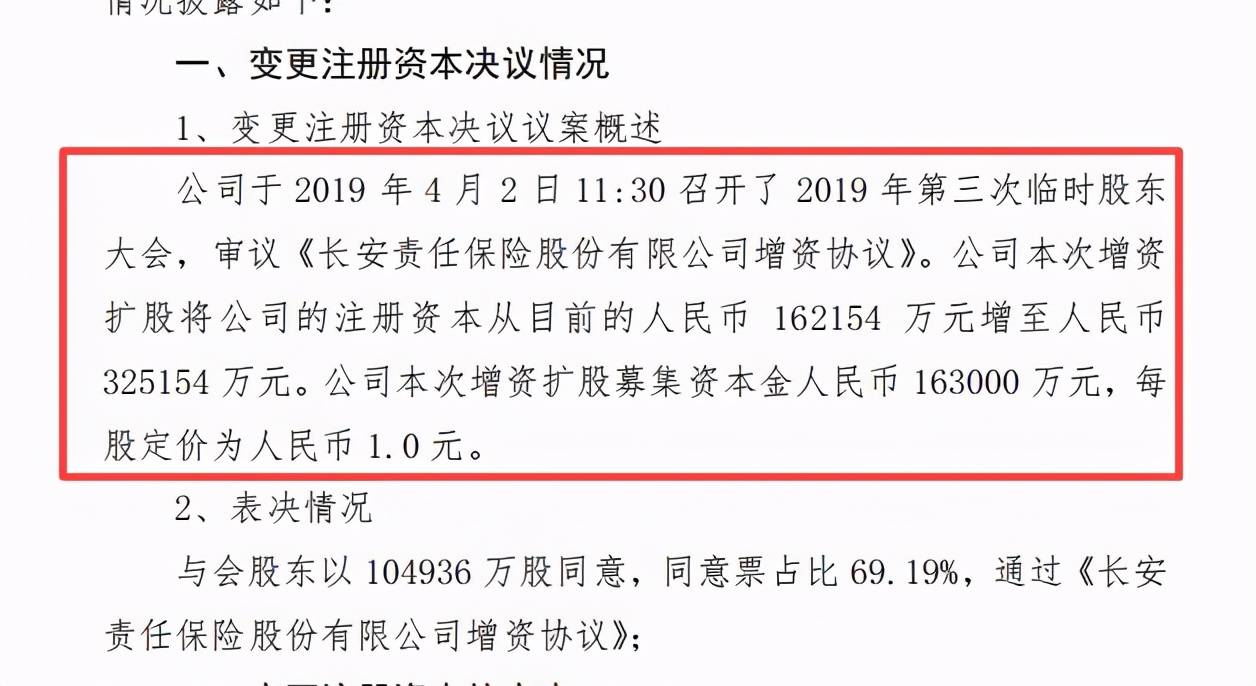 2020年12月,长安保险发布关于变更注册资本有关情况的信息披露公告,长安保险拟引进新股东河南正阳建设工程集团有限公司,认购1.5亿元,增资后股权占比4.41%,注册资本由目前的32.52亿元增至34.02亿元。此次增资计划尚待监管批复。