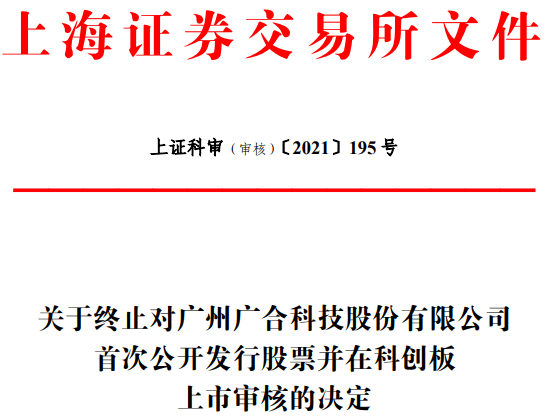 2021年3月24日,广合科技和保荐人民生证券股份有限公司分别向上交所提交了《广州广合科技股份有限公司关于撤回首次公开发行股票并在科创板上市申请文件的申请》(总经办发(2021)第(02)号)和《民生证券股份有限公司关于撤回广州广合科技股份有限公司首次公开发行股票并在科创板上市申请文件的申请》(民生证字[2021]150 号),申请撤回申请文件。根据《上海证券交易所科创板股票发行上市审核规则》第六十七条的有关规定,上交决定终止对广合科技首次公开发行股票并在科创板上市的审核。
