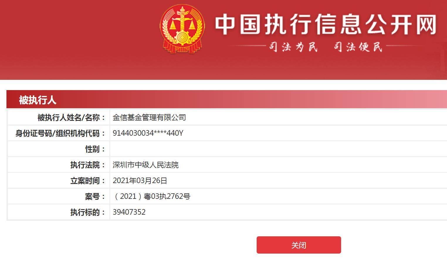 金信基金成被执行人:执行标的超3940万元 关联多条诉讼