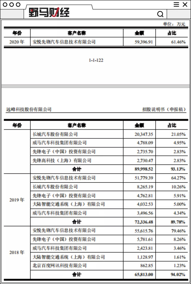 远峰科技便是其中一家,招股书显示,近年来远峰科技主要客户包括安悦先锋、长城汽车、威马汽车、先锋电子等。公司前五大客户营收占比较高。