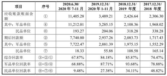 报告期内,公司应收账款期后回款额分别为1717.43万元、2083.73万元、2937.26万元、7740.80万元,综合回款率分别为74.47%、85.87%、84.18%、67.87%。