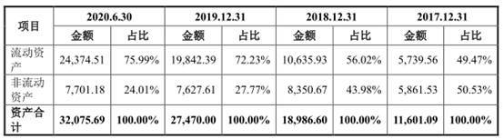 天微电子本次拟募集资金5.20亿元超过公司总资产。2017年至2020年6月30日,天微电子资产总额分别为1.16亿元、1.90亿元、2.75亿元、3.21亿元。