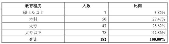 从人员方面来看,公司2020年上半年182名员工,硕士及以上7人,占比3.85%,本科50人,占比27.47%。