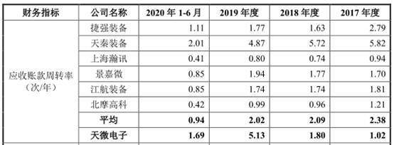 报告期内,天微电子应收账款周转率分别为1.02、1.80、5.13和1.69,同行业公司应收账款周转率均值分别为2.38、2.09、2.02、0.94。
