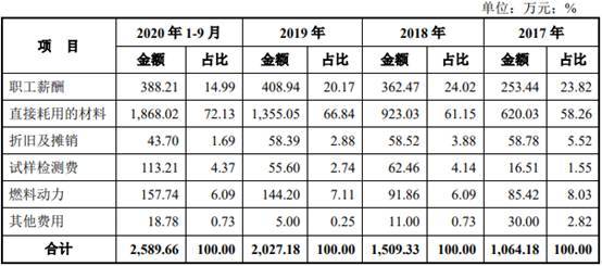 报告期内,海锅股份的研发费用分别为1064.18万元、1509.33万元、2027.18万元、2589.66万元,公司研发费用主要由研发人员薪酬以及研发直接耗用的材料等构成。