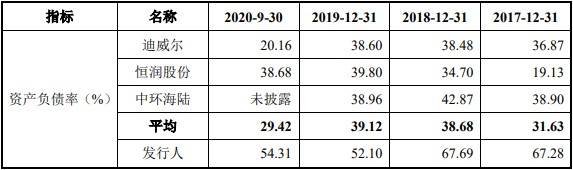 海锅股份资产负债率大幅高于同行公司均值,且为同行最高。2017年末、2018年末、2019年末和2020年9月末,海锅股份资产负债率分别为67.28%、67.69%、52.10%和54.31%,同行业可比公司平均值分别为31.63%、38.68%、39.12%、29.42%。