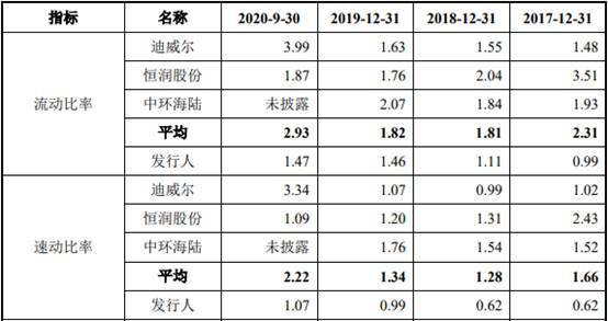 海锅股份的流动比率及速动比率低于同行业可比公司平均水平。2017年末、2018年末、2019年末和2020年9月末,海锅股份流动比率分别为0.99、1.11、1.46和1.47,同行业可比公司流动比率平均值分别为2.31、1.81、1.82、2.93;海锅股份速动比率分别为0.62、0.62、0.99和1.07,同行业可比公司速动比率平均值分别为1.66、1.28、1.34、2.22。