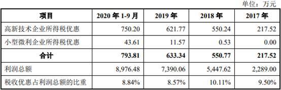 2020年前三季度税收优惠占利润总额8.84%