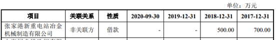 比如,上会稿显示,非关联方张家港新重电站冶金机械制造有限公司(下称“新重有限”)系海锅股份长期合作客户,双方合作良好。为获得采购优惠价,同时考虑未来采购锻件数量存在不确定性,新重有限与海锅股份商定于2016年3月、2017年12月及2018年8月由新重有限向海锅股份分别提供300万元、400万元及500万元的无息借款。