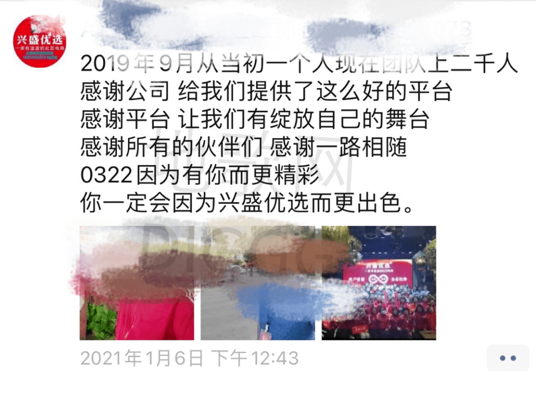 2021年元旦期间,一名拓展了2000名下线的兴盛优选BD,和团队成员组织了一场团建,并且还在微信朋友圈内发文感谢,他们亦在源源不断的给兴盛优选编织的“幻梦”,增光添彩。