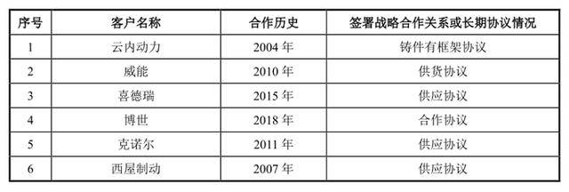 另一方面,铸件类业务合作关系建立后,一般会持续供货,签署供货协议或合作协议,协议期限相对较长,后续通过具体订单实施采购。公司与铸件客户的协议签署情况如下表所示: