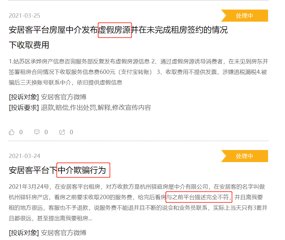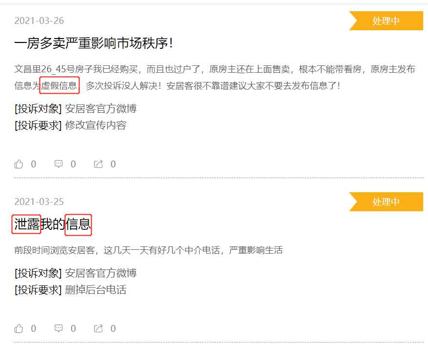 与此同时,作为线上流量模式的基石,平台上信息的真实性显得至关重要。在黑猫投诉平台上,安居客收到超过700条投诉,被投诉理由多是虚假房源、黑中介、泄露客户信息等。