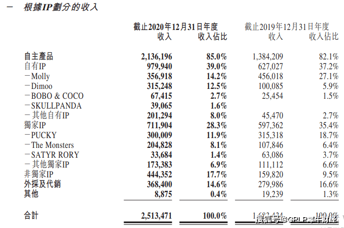 从IP分类看,泡泡玛特的IP分为自有IP、独家IP、非独家IP。自有顾名思义就是原创IP,然而泡泡玛特的明星系列自有IP“Molly”2020年的收益同比下滑21.71%。