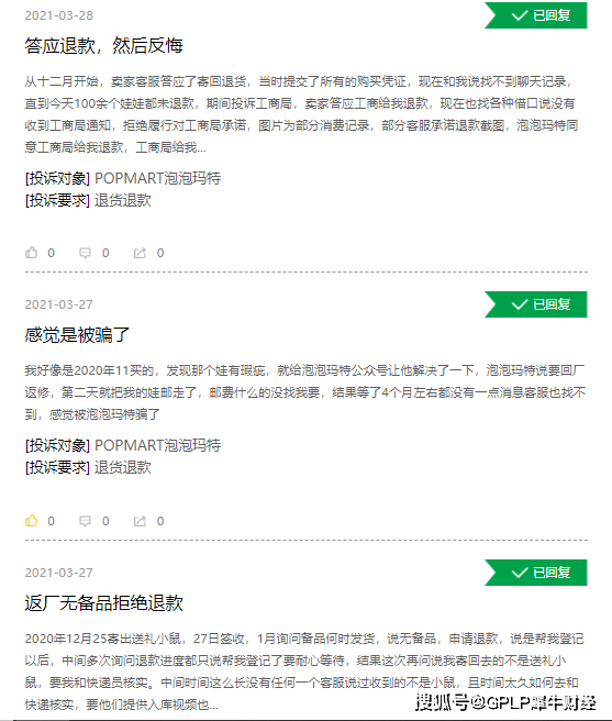 除了增速放缓、股价“腰斩”,泡泡玛特的售后问题也颇具争议。