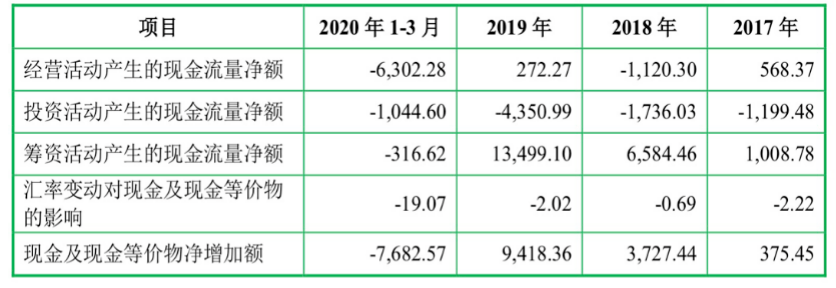 据招股书显示,报告期内其经营活动产生的现金流量净额分别为568.37万元、-1120.30万元、272.27万元和-746.59万元,上下波动幅度较大。